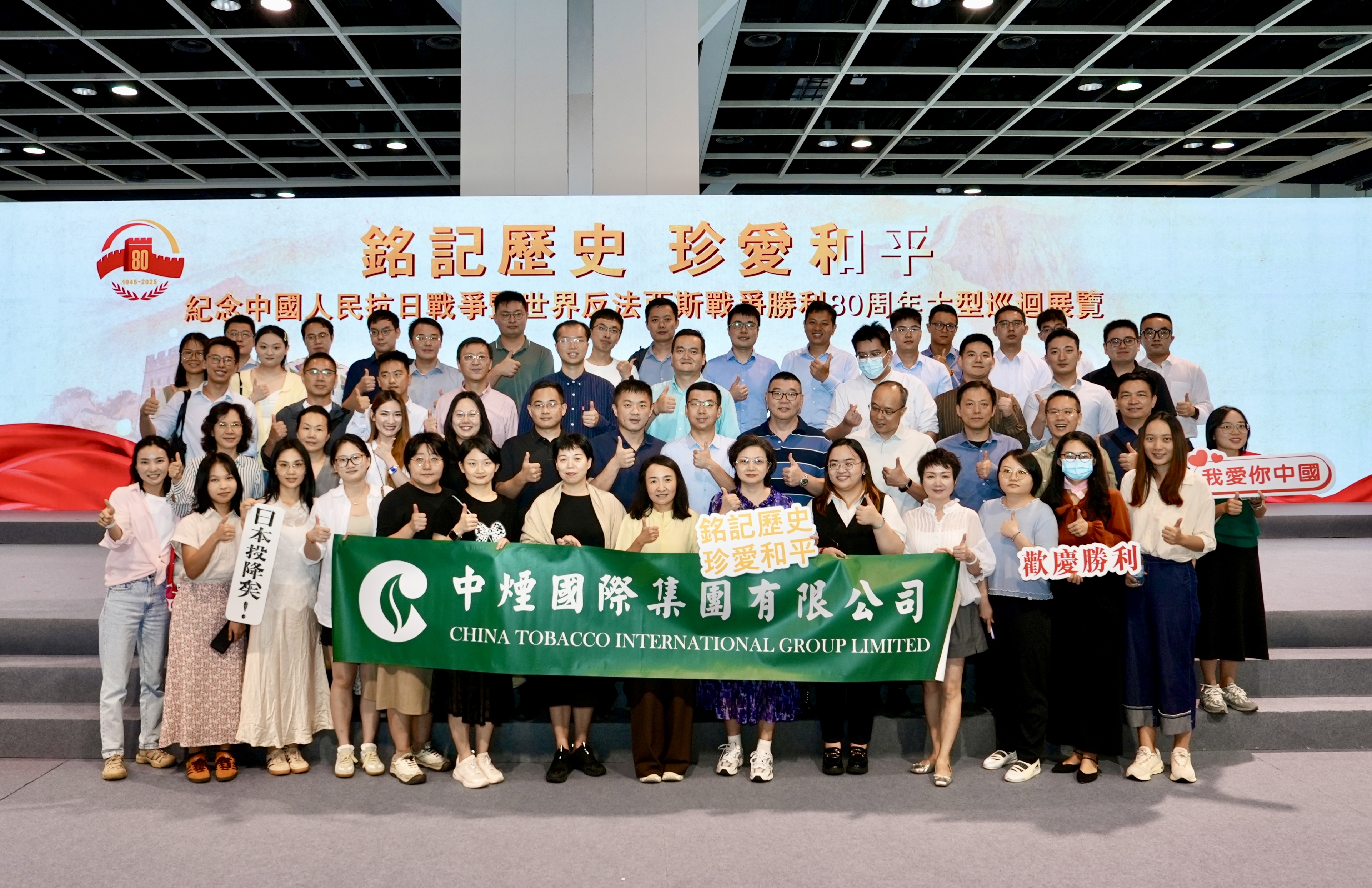 +                                2025年8月26日下午,中烟国际集团有限公司组织全体员工前往香港会展中心,参观由香港大公文汇传媒集团主办的“为了中华民族伟大复兴——纪念中国人民抗日战争暨世界反法西斯战争胜利80周年大型巡回展览”